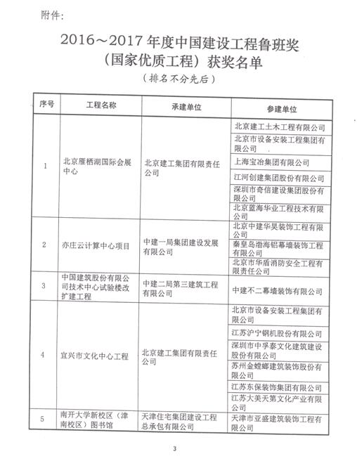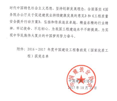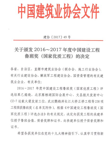 設(shè)立于1987年的“魯班獎(jiǎng)”是我國(guó)建筑行業(yè)工程質(zhì)量的最高榮譽(yù)獎(jiǎng)。魯班獎(jiǎng)的評(píng)選對(duì)象為我國(guó)建筑業(yè)企業(yè)在境內(nèi)承包并已建成投入使用的各類新建工程,工程質(zhì)量應(yīng)達(dá)到國(guó)內(nèi)一流水平。獲獎(jiǎng)單位分為主要承建單位和主要參建單位。魯班獎(jiǎng)工程劃分為4類,分別是:公共建筑工程,工業(yè)、交通、水利工程,住宅工程和市政、園林工程。魯班獎(jiǎng)的評(píng)選工作,始終堅(jiān)持"高標(biāo)準(zhǔn)、嚴(yán)要求、優(yōu)中選優(yōu)、寧缺毋濫"的原則,對(duì)申報(bào)工程規(guī)定了嚴(yán)格的評(píng)選條件。申報(bào)工程在達(dá)到規(guī)定規(guī)模的前提下,必須是列入各地區(qū)或部門建設(shè)計(jì)劃、嚴(yán)格履行了工程建設(shè)基本程序,已形成生產(chǎn)能力或使用功能,工程竣工后經(jīng)過一年以上的使用檢驗(yàn),并按規(guī)定完成了全面驗(yàn)收的新建工程。工程施工質(zhì)量除了要符合國(guó)家和行業(yè)標(biāo)準(zhǔn)外,還必須達(dá)到全國(guó)同類工程的領(lǐng)先水平,是省、部范圍評(píng)出的質(zhì)量最優(yōu)工程。工程設(shè)計(jì)不僅要符合城市規(guī)劃、國(guó)家和部頒設(shè)計(jì)標(biāo)準(zhǔn),還要達(dá)到省、部范圍內(nèi)"先進(jìn)、合理"的水平。
