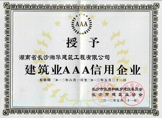 6月21日,長(zhǎng)沙市住房和城鄉(xiāng)建設(shè)委員會(huì)、長(zhǎng)沙市建筑業(yè)協(xié)會(huì)聯(lián)合舉行長(zhǎng)沙市建筑業(yè)信用企業(yè)授牌儀式,我公司被授予“建筑業(yè)AAA信用企業(yè)”。